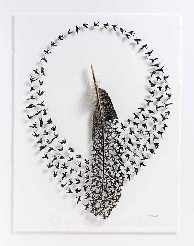 Feathers have always been part of Chris Maynards life. They represent flight, transformation, and a bridge between our present lives and our dreams. Since feathers are universal symbols these qualities, Maynard’s art speaks to many people’s longings as well as to people who revere birds.