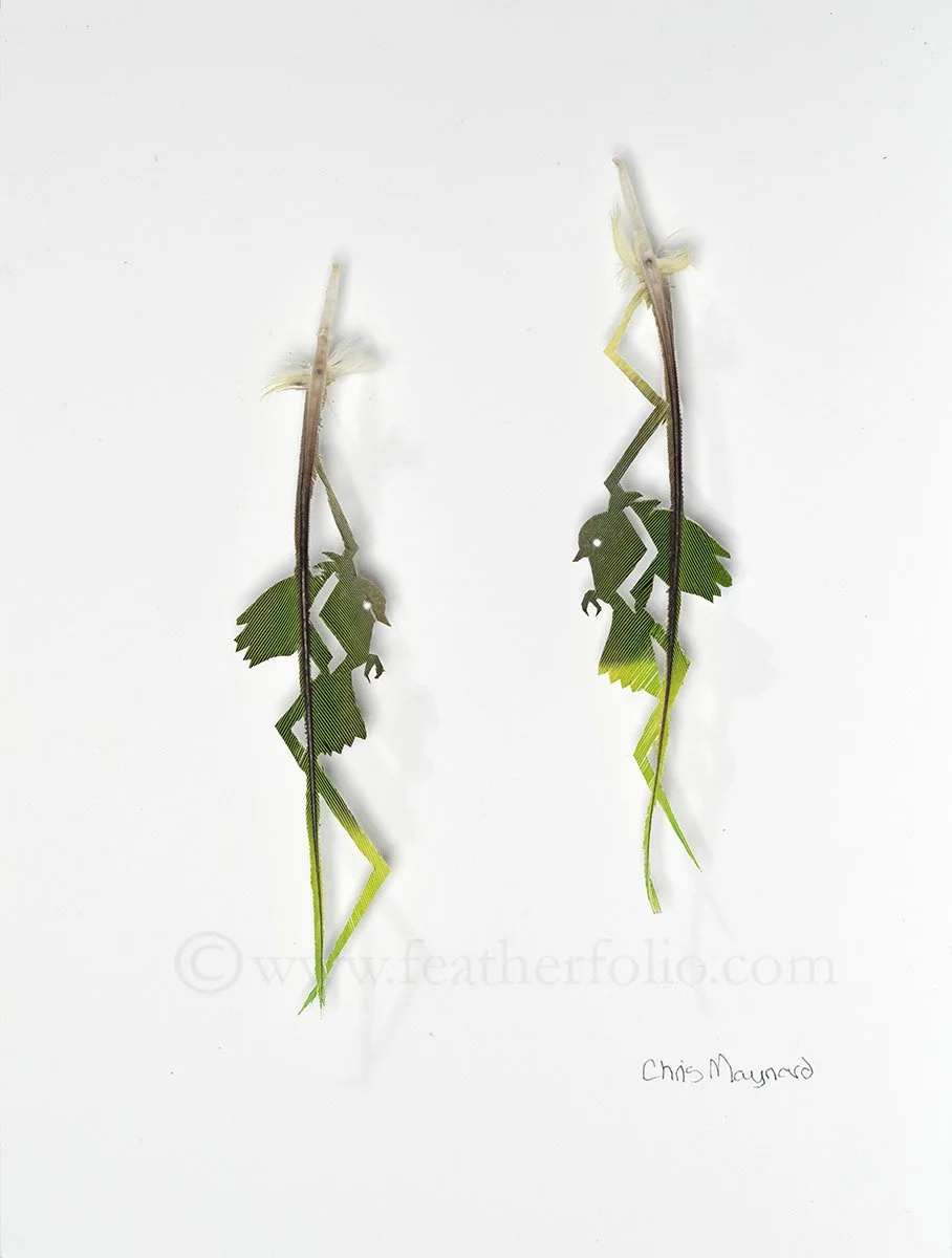 Fierce Chickadees, Amazon feathers, 7x5 inches