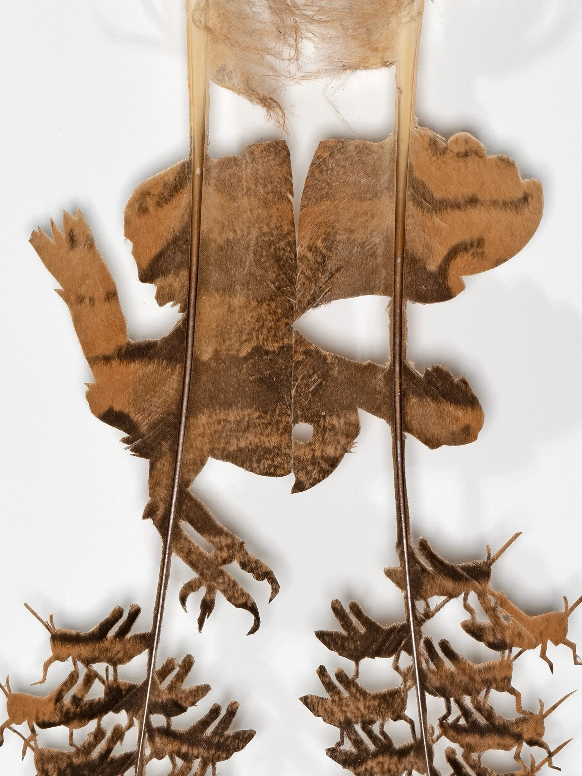 Hand carved out of a naturally shed Crowned Crane Feather.